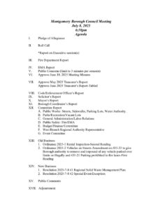 July 8 2025 – Montgomery Borough Council Agenda
