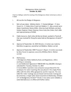 September 18 2025 – Montgomery Water Minutes